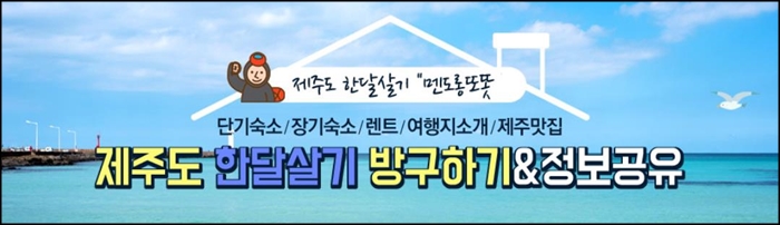 아무래도 가장 걱정되는 것은 광고나 비싼 숙소 임대료일 것입니다. 그렇기에 많은 분들이 소통하는 공간인 관련 카페를 검색하시는 것이 가장 유용합니다. 카페홈에서 '제주도 한달살기'를 검색해보시기 바랍니다.